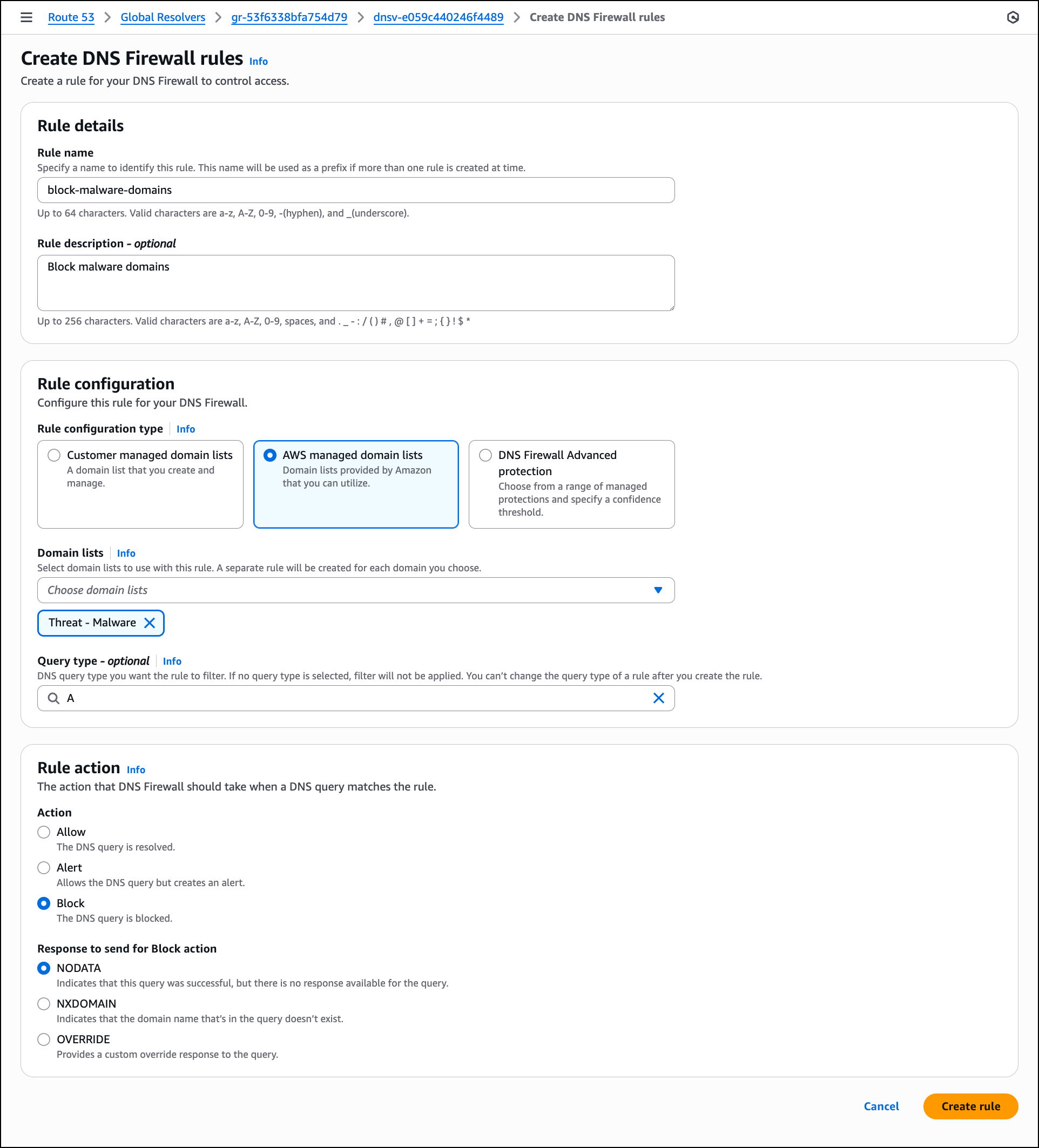 - Rule Name 입력 (예: block-malware).